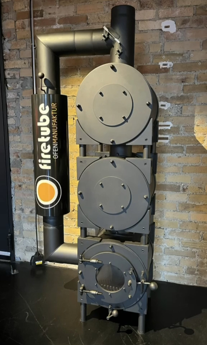 Eine dieser schwebenden Öfen wird 2026 nach Gütersloh kommen und von uns in eine Wärmepumpenanlage integriert werden.