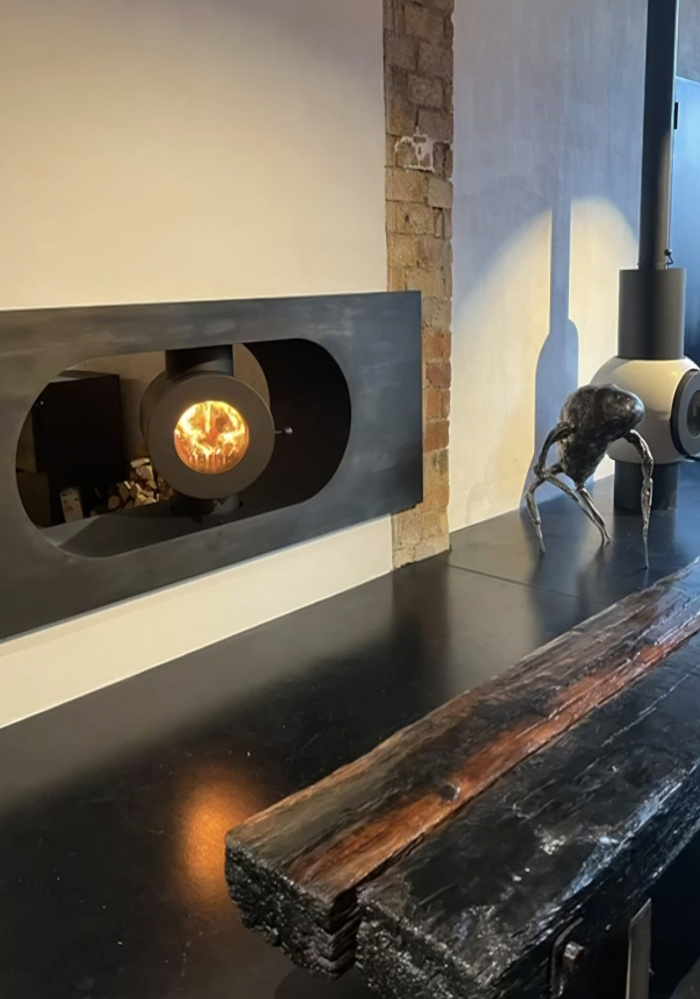 Wir sind immer wieder fasziniert von den schwebenden Öfen, die als Sonderanfertigung aber fast nie in der Ausstellung zu sehen sind, da sie direkt ab Produktion in den Versand gehen.