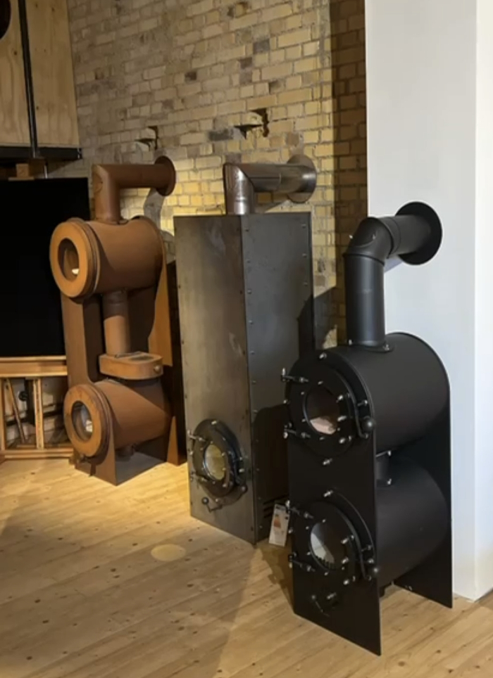 Man entdeckt immer neue Ideen, Prototypen, halbfertige fertige und versandfertige Öfen in verschiedensten Optiken wie Rohstahl, gebürstetet Stahl, mit Pulverbeschichtung etc.
