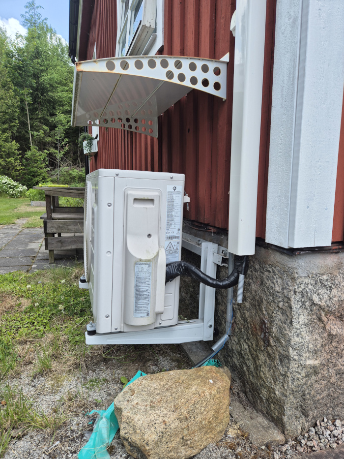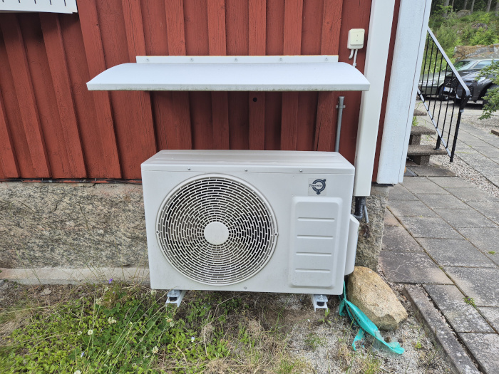 Das Klimagerät steht wegen der Schneemengen auf einer Wandkonsole und hat ein zusätzliches Dach. So kann die Anlage täglich gut schneefrei gehalten werden.